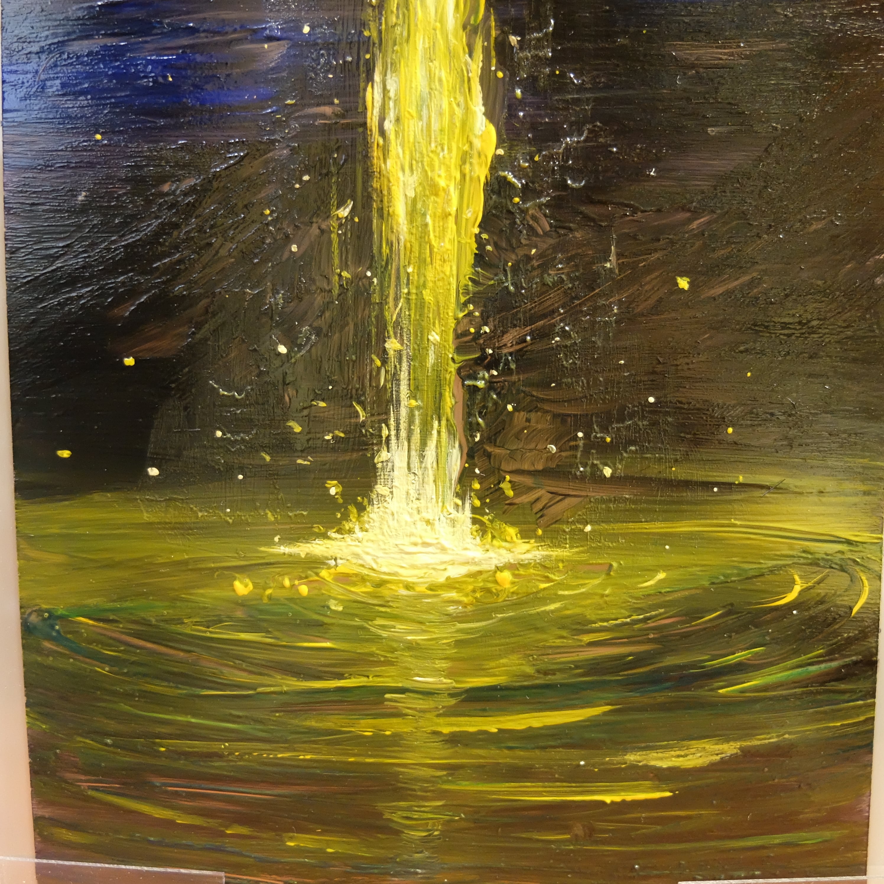 闇は光を綺麗に魅せてくれます。闇を照らす光の滝をイメージして描きました。