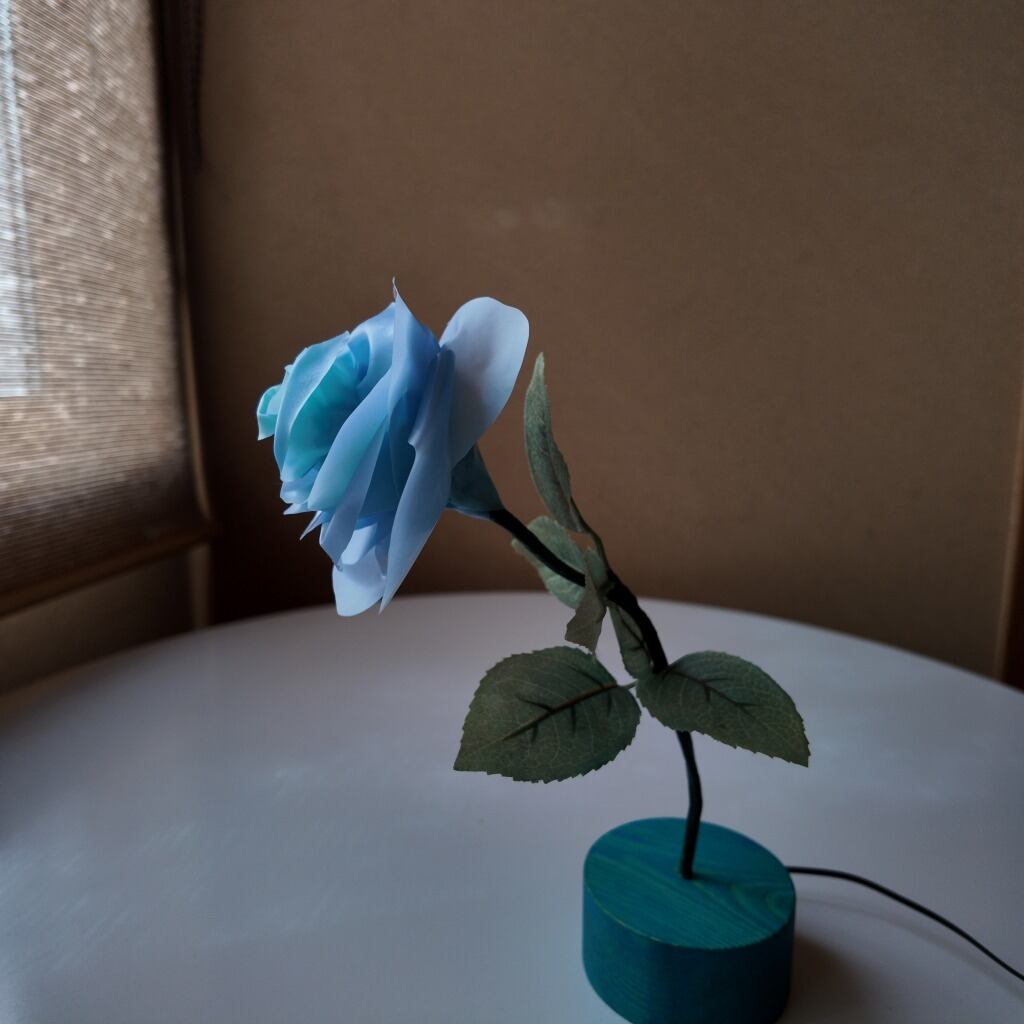 バラの中心が浅瀬の海のようなエメラルドブルー、